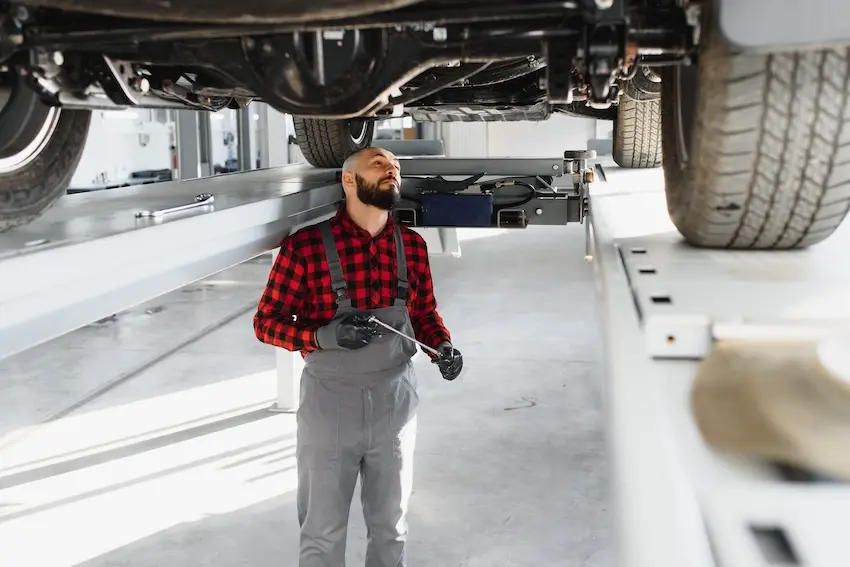 Mechanic conducting thorough truck maintenance inspection to identify mechanical defects and prevent accidents caused by maintenance negligence in Georgia